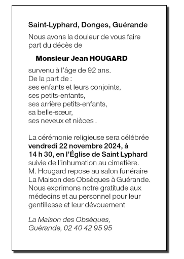 Veuf de Madame Paulette HOUGARD