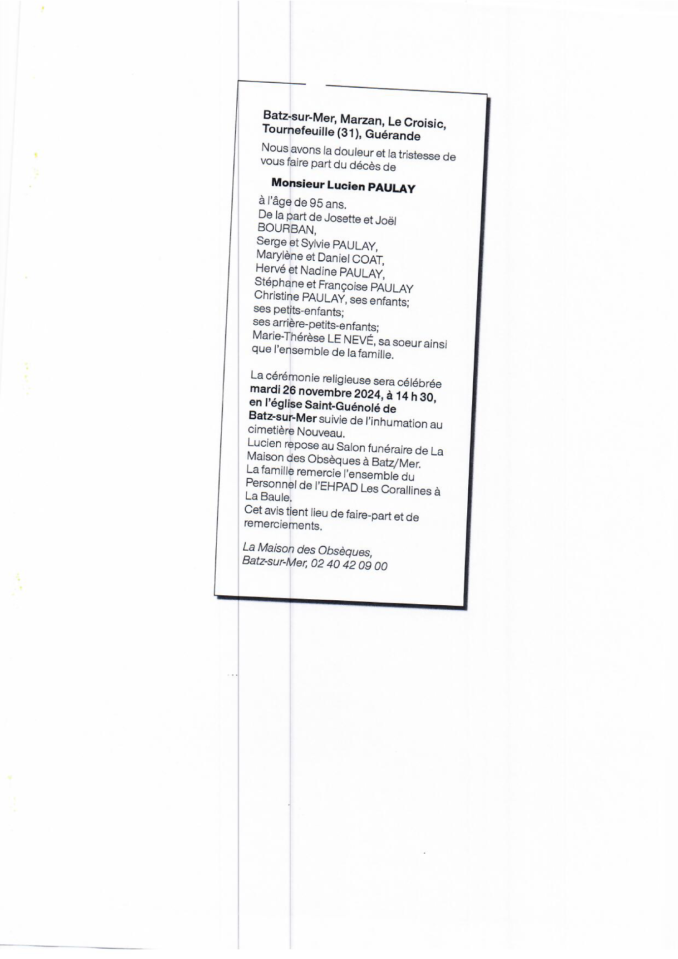 Décédé à La Baule-Escoublac (44500, France) le mardi 19 novembre 2024 à l'âge de 95 ans