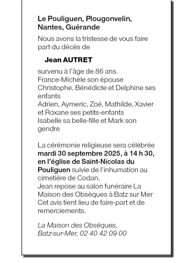 Décédé à Saint-Nazaire (44600, France) le mercredi 24 septembre 2025 à l'âge de 86 ans