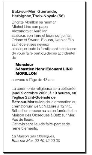 Décédé à Guérande (44350, France) le mardi 30 septembre 2025 à l'âge de 43 ans