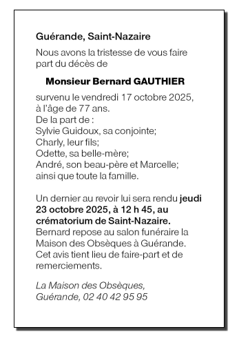 Décédé à Saint-Nazaire (44600, France) le vendredi 17 octobre 2025 à l'âge de 77 ans