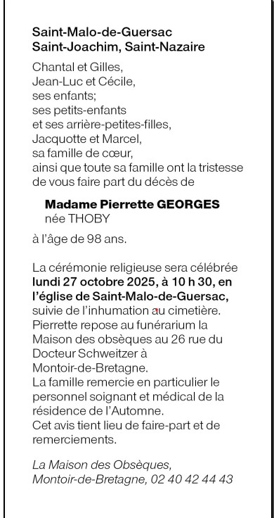 Madame Pierette GEORGES née THOBY