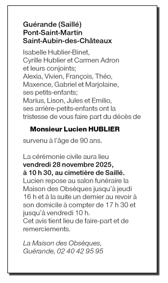 Décédé à Guérande (44350, France) le mardi 25 novembre 2025 à l'âge de 90 ans