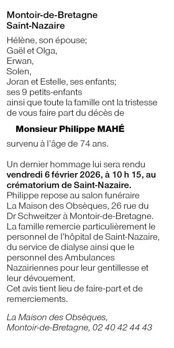 Décédé à Saint-Nazaire (44600, France) le mardi 27 janvier 2026 à l'âge de 74 ans