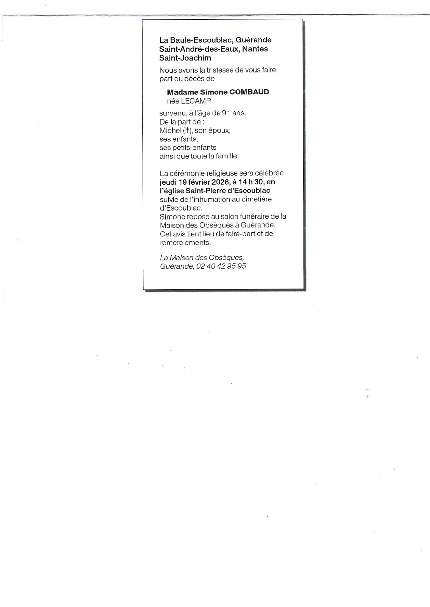 Décédée à La Baule-Escoublac (44500, France) le samedi 14 février 2026 à l'âge de 91 ans