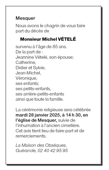 Décédé à Guérande (44350, France) le mardi 21 janvier 2025 à l'âge de 85 ans