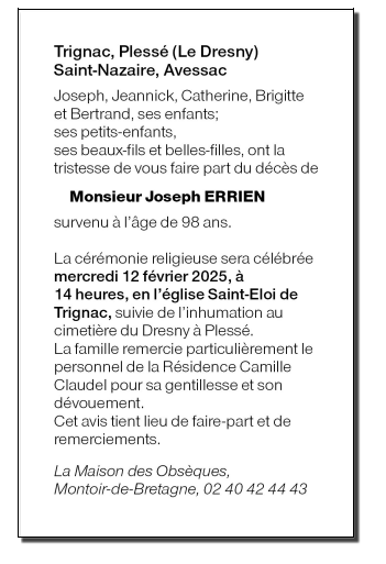 le jeudi 6 février 2025 à l'âge de 98 ans