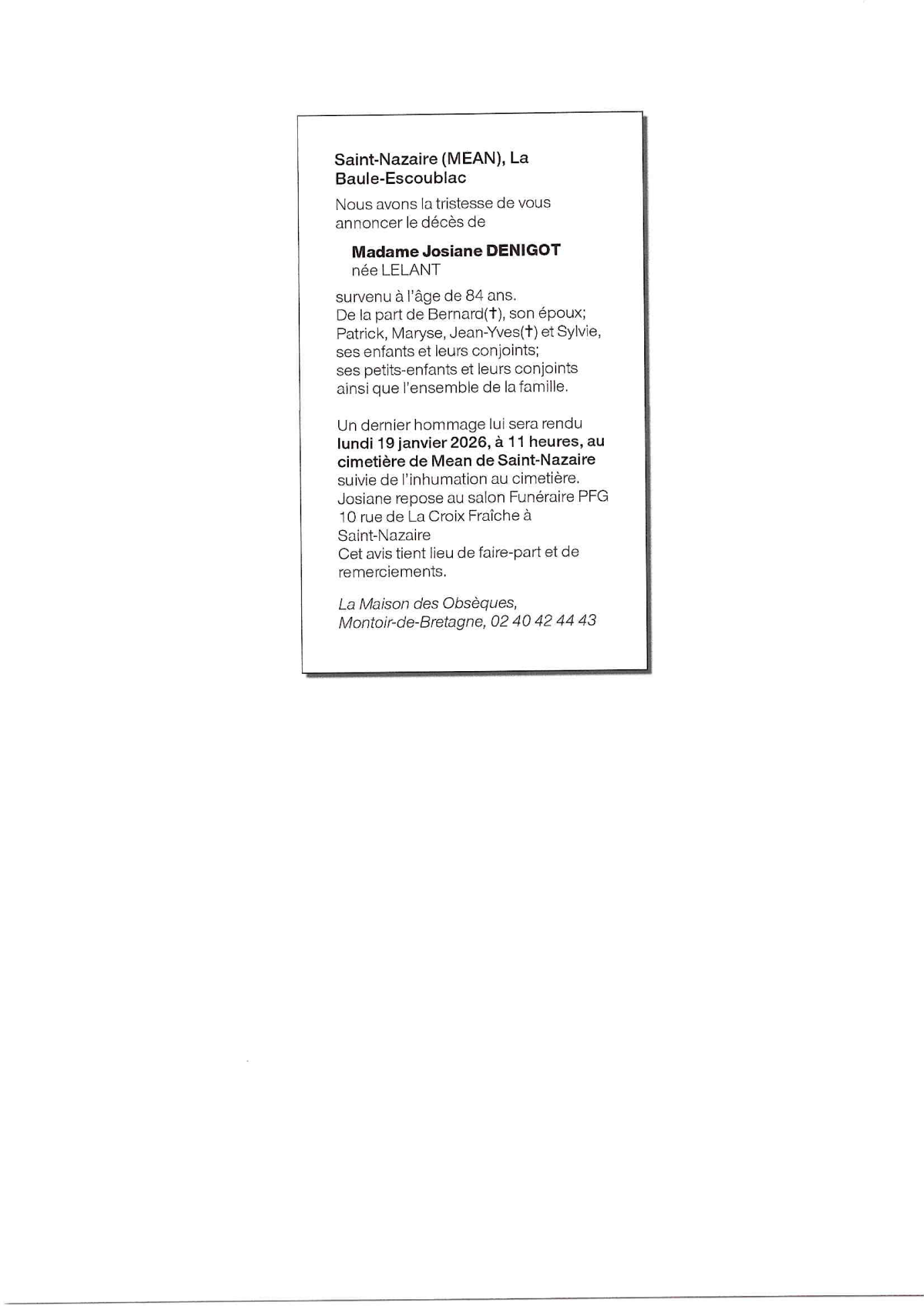 Décédée à Saint-Nazaire (44600, France) le mardi 13 janvier 2026 à l'âge de 84 ans
