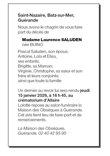 Décédée à Saint-Nazaire (44600, France) le samedi 10 janvier 2026 à l'âge de 52 ans