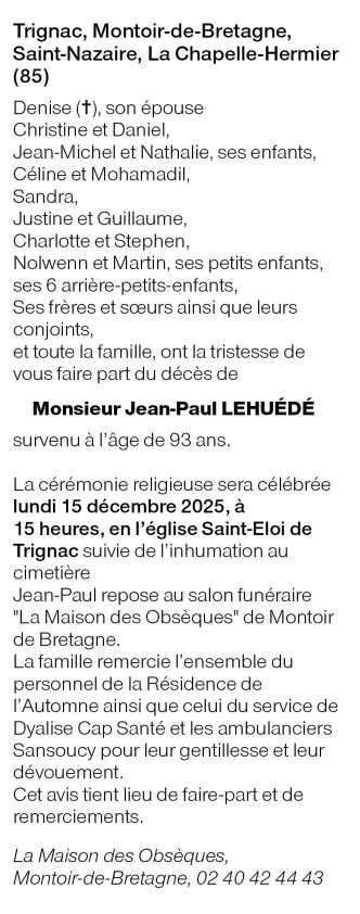 le mercredi 10 décembre 2025 à l'âge de 93 ans